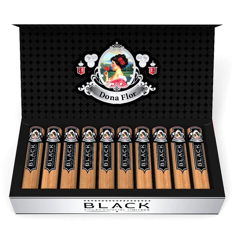 Com uma embalagem exclusiva, o estojo em preto fosco transmite luxo e sofisticação, tornando-o não apenas um charuto, mas uma verdadeira celebração dos sentidos. Aprecie a versão Black dos icônicos charutos Dona Flor.